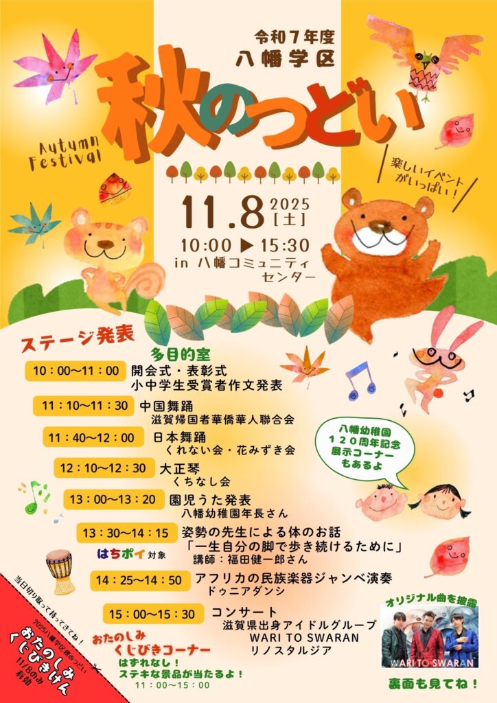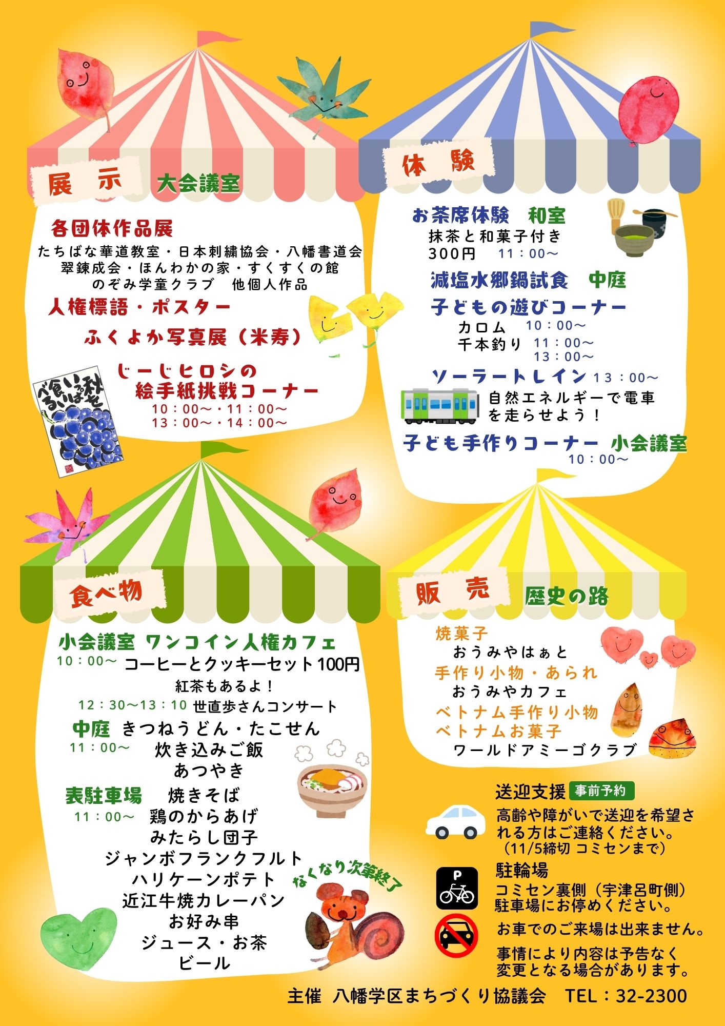 八幡学区の秋のお祭り「秋のつどい」が開催されます。